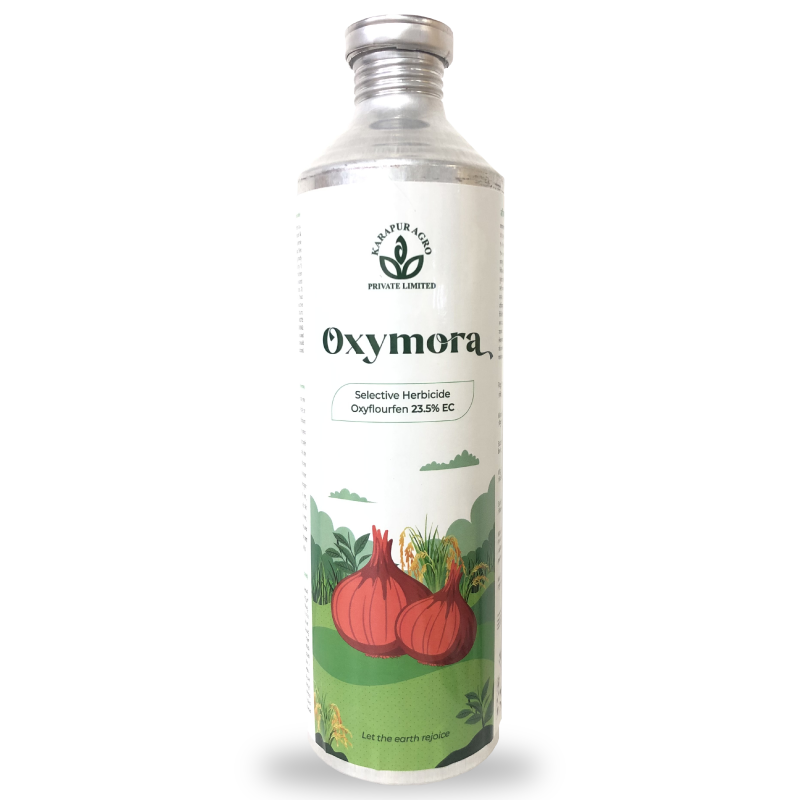 OXYMORA contains Oxyfluorfen as active ingredient which belongs to diphenyl ether, and act as pre-emergence herbicide. It is effective in controlling a variety of broadleaf weeds and grasses in multiple agricultural settings and plays a crucial role in weed management in crops such as onions, groundnut, rice, tea, potato and mentha. OXYMORA interferes with Plant Enzyme Activity, leading to oxidative damage in weed cells. This results in rapid desiccation and elimination of susceptible weeds within hours of application.